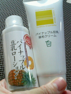 おすすめは、パイナップル豆乳ローションとパイナップル豆乳除毛クリームです。豆乳ローションは、カミソリや除毛クリームなどの自己処理後のケア用のローションになります。産毛程度の細いムダ毛には、ローションだけでも効果が期待できますが、太い場合は剃るなり除毛するなりした後で豆乳ローションを塗るといいです。